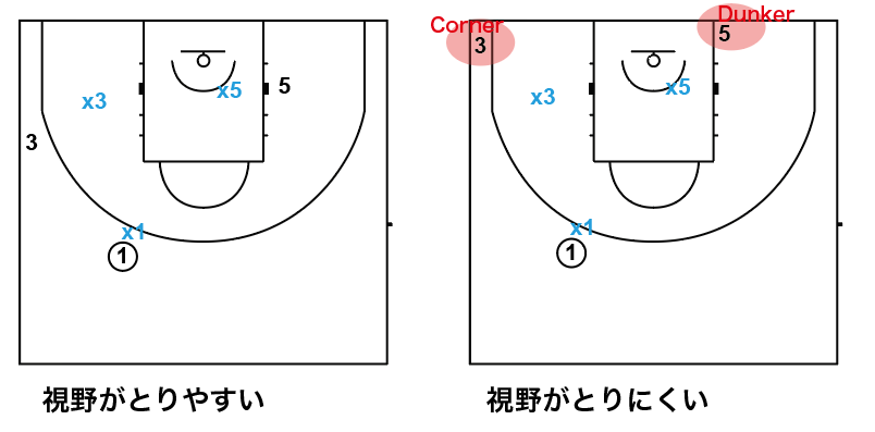 マンツーマンの方がボールへの視野の確保が難しくなるので実はパスカットが難しい。