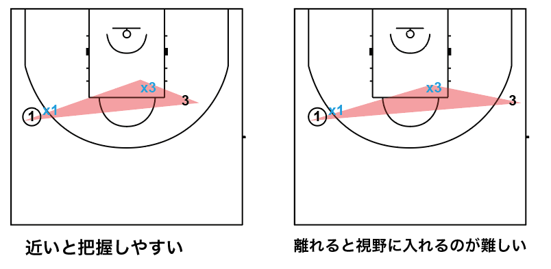 - ボールとマークマンの両方を視野に入れるのはNBAレベルでも困難
