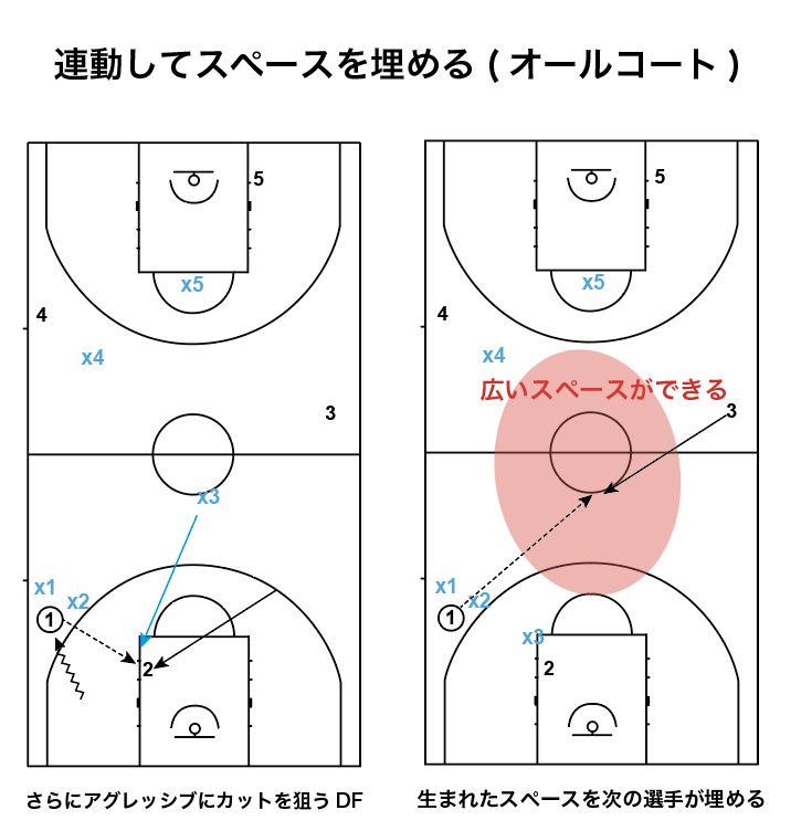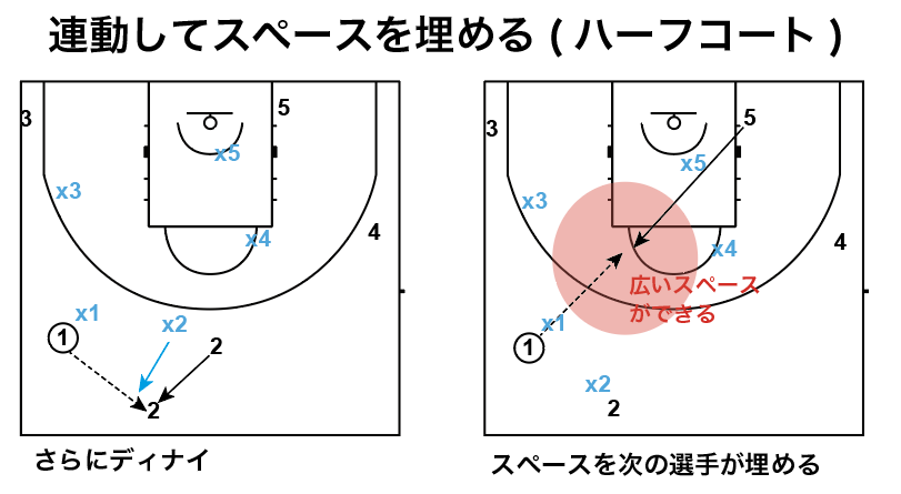 ハーフコートでも考え方は同じです。