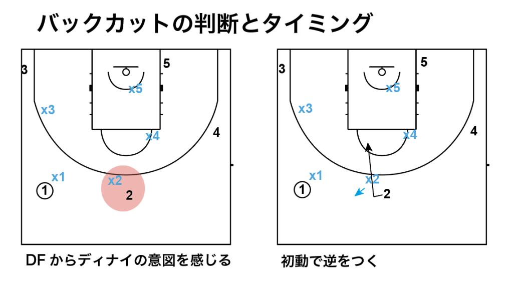 バックカットはディナイされたときの対処としてももちろん効果はありますが、それよりも大事なのは「カウンター(逆をつく)」で行うことです。