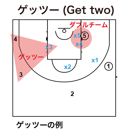「バスケットボールをしていない」プレイヤーは守る必要がありませんから、実質的に4v5が発生しいて、そのプレイヤー守るべきDFが別の場所へのパスカットを狙ったり、ダブルチームを仕掛けたり自由に動ける状態となります。